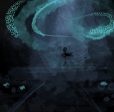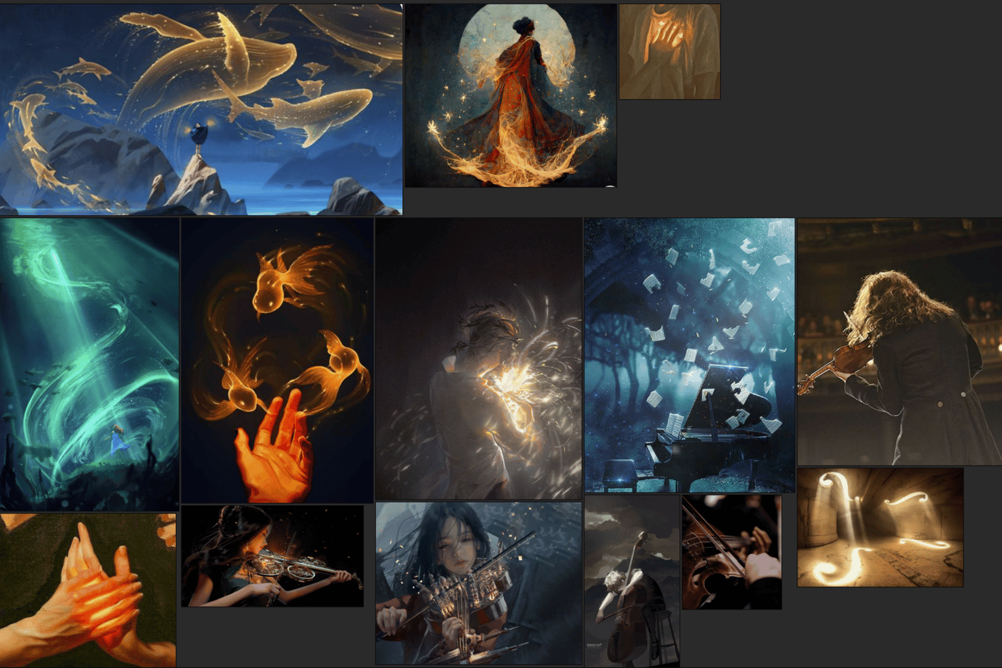 Over the weekend, I considered how I could expand upon my musician's journey concept to create a more developed story. After collecting references that gave me inspiration, I knew I would need the help of an fx artist, which led me to reaching out to a good friend Thalia Valencia-Murphy.