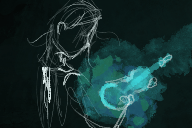 The story begins with the musician being part of the audience while listening to the beginning of a solo violinist. They are so captured by this art form, unlike the rest of the crowd, and their hands reach their heart.