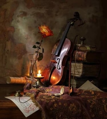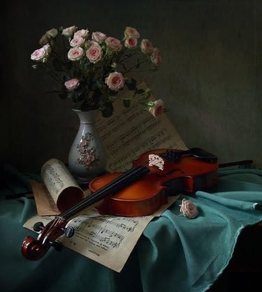 My goal is to make these series of shots to feel like a still-life with dramatic lighting and rack-focus. I will ask thalia to make a draped cloth for the table, and sheets of music will be scattered on the table as well.